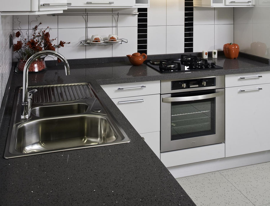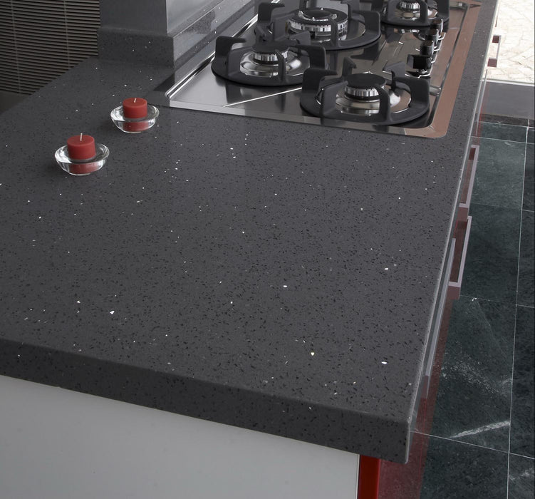 ELVAS este un quartz compozit unicat de culoare gri cu inserții de cristale, ce adaugă o notă de eleganță și rafinament oricărui proiect. Fabricat de Cimstone, acest material premium este perfect pentru cei care doresc să îmbine estetica cu funcționalitatea. Blaturile din ELVAS sunt perfect adaptabile pentru orice tip de design, oferind o durabilitate remarcabilă și un aspect sofisticat care va impresiona atât vizual, cât și prin performanțele sale tehnice.