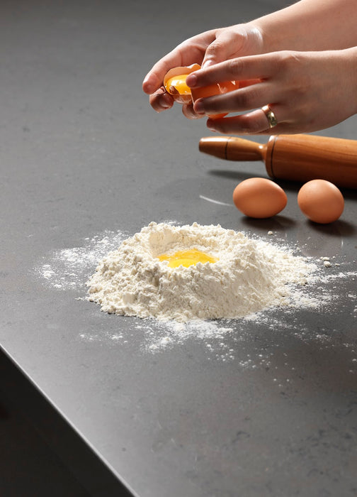- Se pot tăia / toca alimente pe blatul de quartz. Însă, deși blatul de quartz compozit este extrem de rezistent la zgârieturi și tăieri, pentru a menține aspectul de nou și peste 10-20 de ani vă recomandăm să folosiți un suport de tăiere.