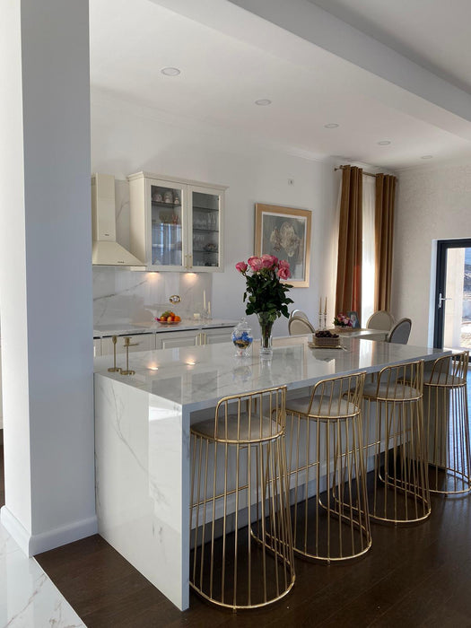 Pentru curățarea blaturilor de baie Calacatta Oro, se recomandă utilizarea produselor de curățare blânde, non-abrazive. Evitați expunerea directă la temperaturi extreme sau contactul cu obiecte ascuțite pentru a prelungi durabilitatea produsului.